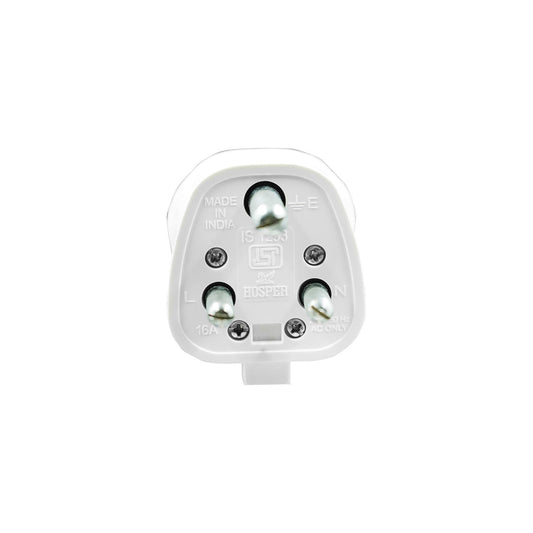 BITCORP 16A 3 Pin Top Plug Flat Plastic White Long Life Elegant Design Plug