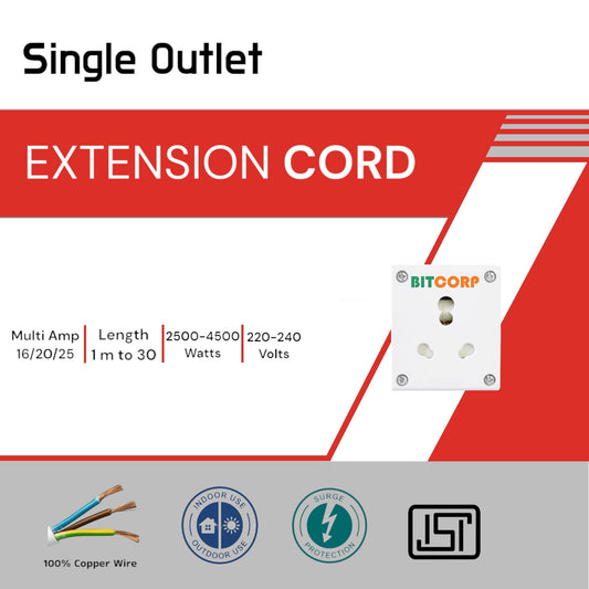 Bitcorp 15A 16A 20A Heavy Duty Extension Board International 1 Socket (3500W) Surge Protector With 25 Meter Long Wire Cable For Charger, Ac, Refrigerator, Microwave & Large(Pack Of 2)