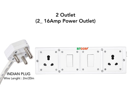 Bitcorp 15A 16A 20A Extension Board International 2 Socket 2 Switch (2500W) Surge Protector With 10 Meter Long Wire Cable For Charger, Ac, Refrigerator, Washing Machine & Large(Pack Of 2)