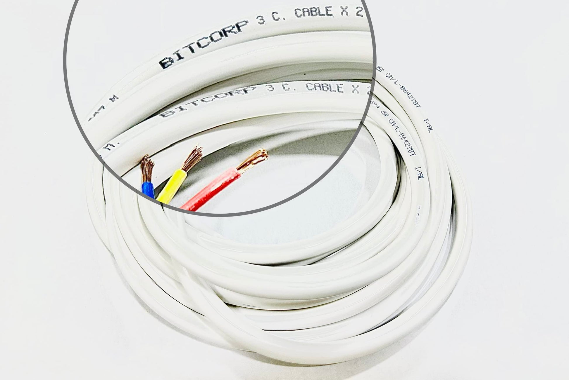 BITCORP .75 mm 3 core copper wire cable cord (white)