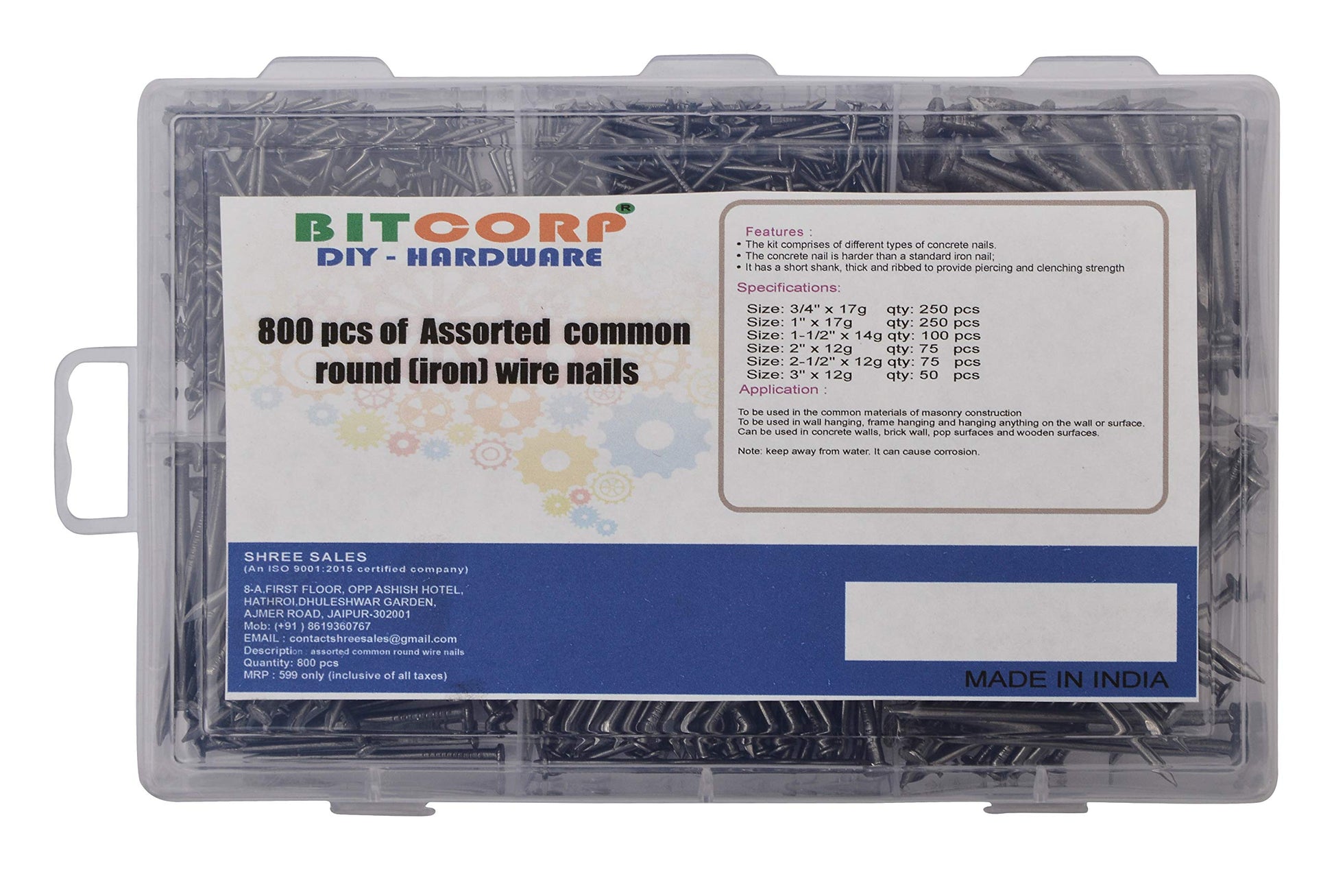 BITCORP DIY Hardware 800ACR Metal Assorted Common Round Wire Nails (Pack of 800)