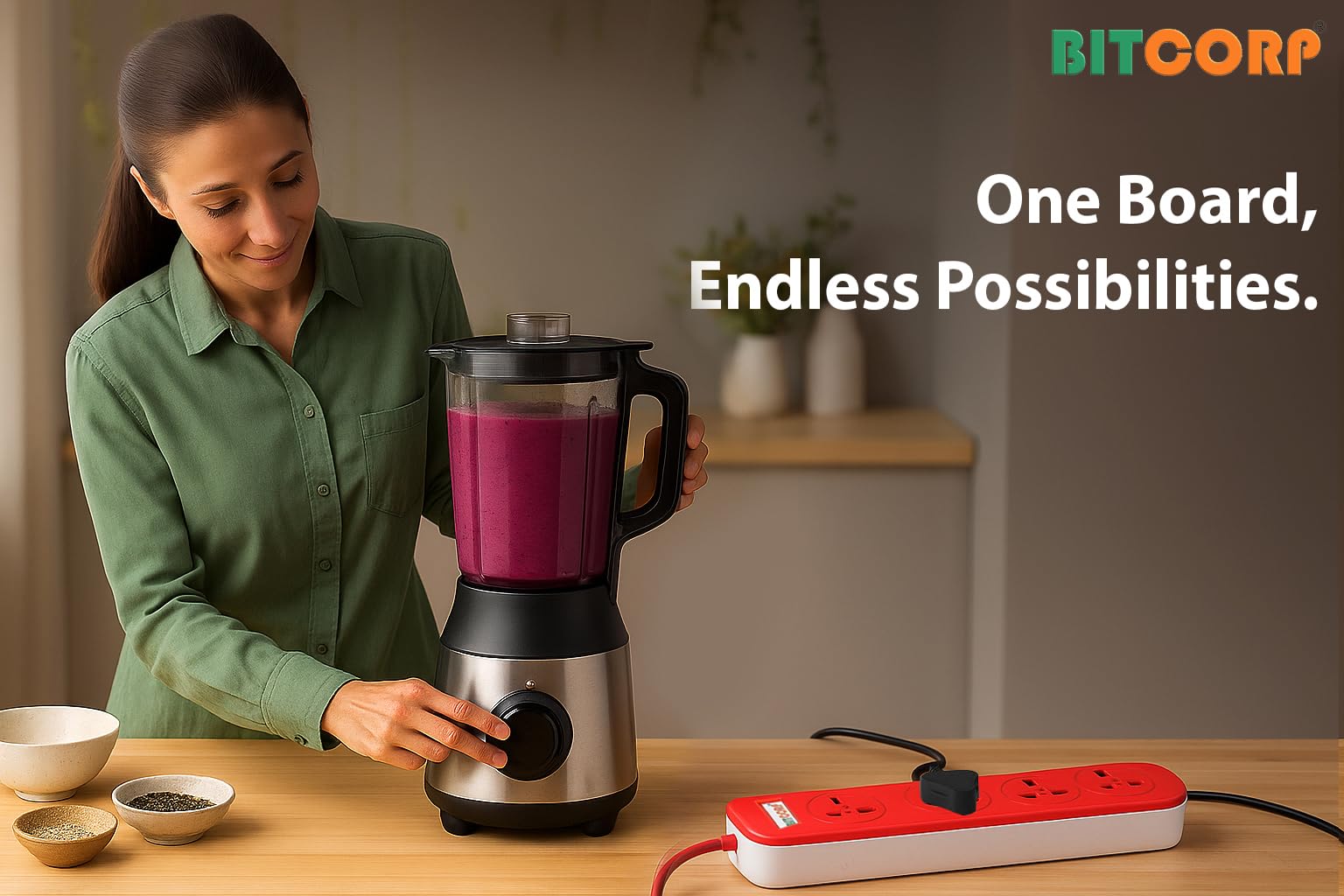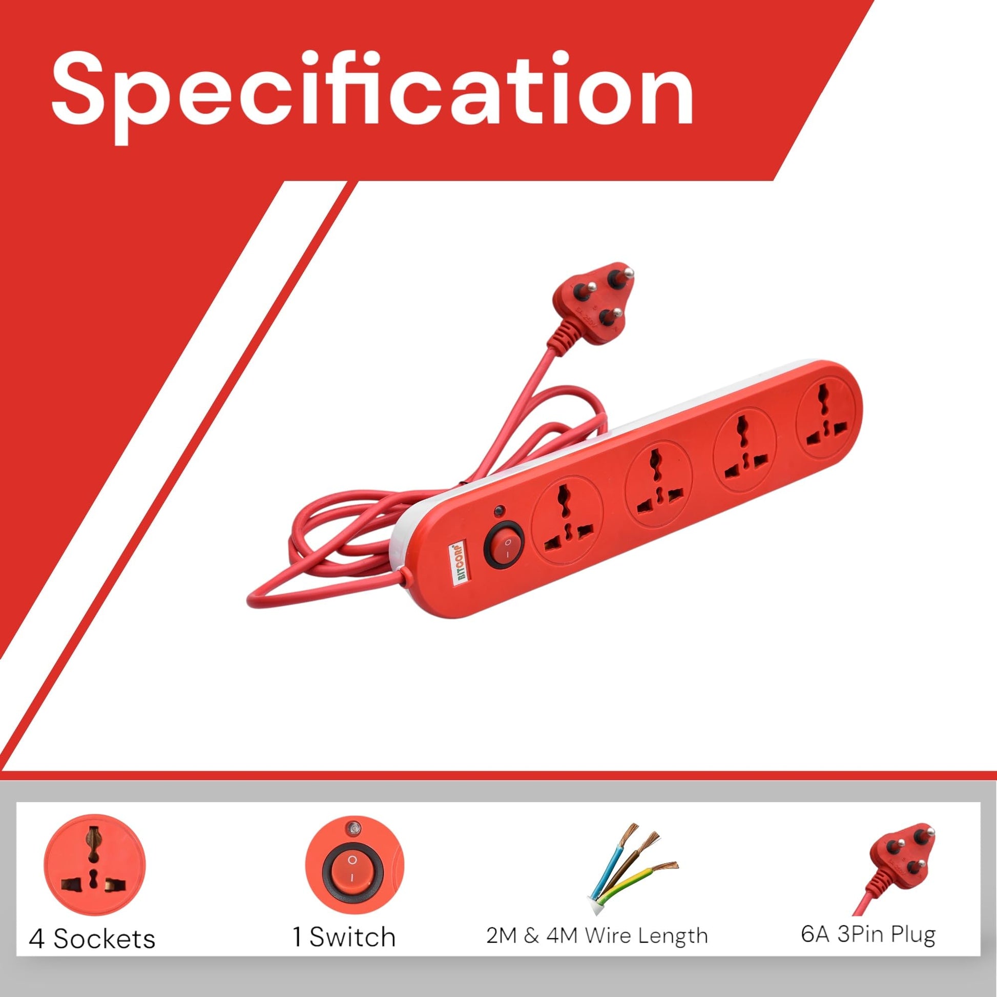 Bitcorp Extension Board 10Amp 250 Volts with Mtr Extension Cord & Surge Protector | Master Switch, Safety Shutter, 4 International Sockets | Multi Plug Travel Adapter for Home Appliances