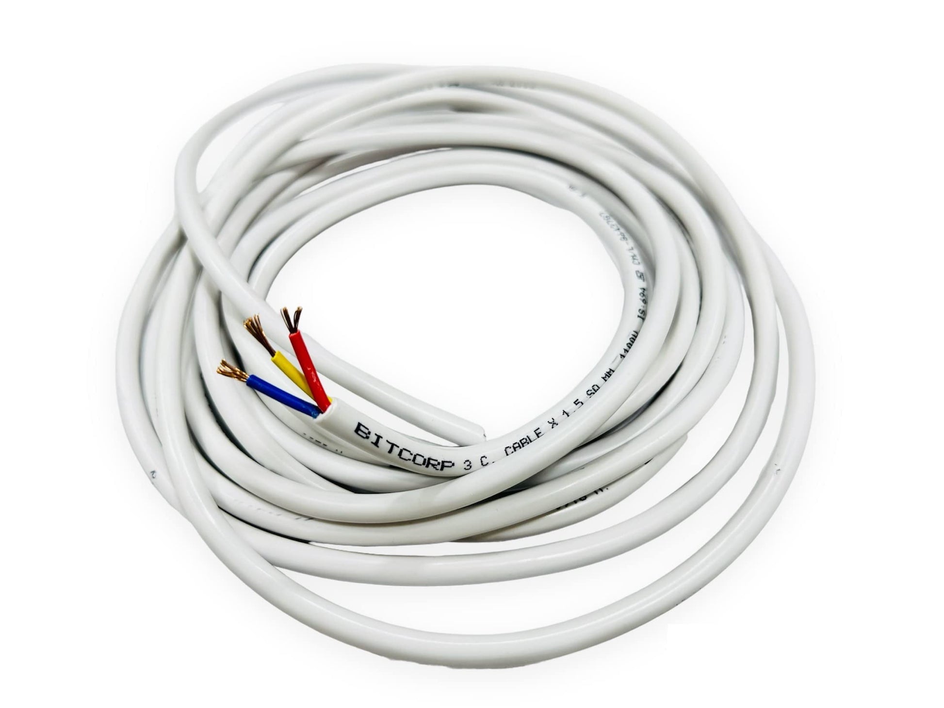 - Wire Length: Meter | Size: 3 Core Cable | Material Type: Pure Copper ISI Certified Wire | Brand: Bitcorp | Color: White | Features: Heavy Duty, Triple Pvc Insulation with earthing